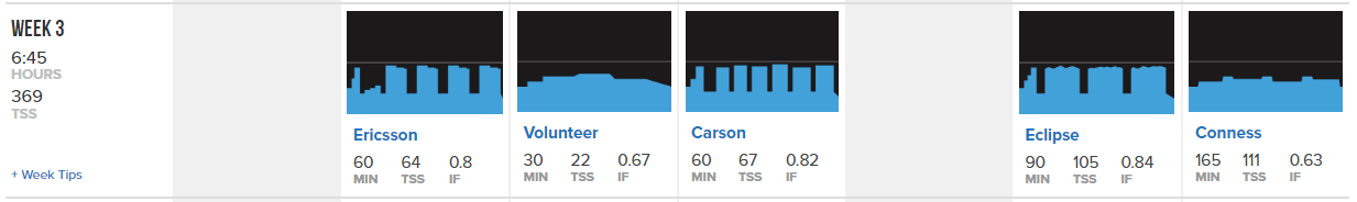 This sample week from TrainerRoad’s Sweet Spot Base plan has over 2 hours of SST with less than 7 hours time commitment for the week