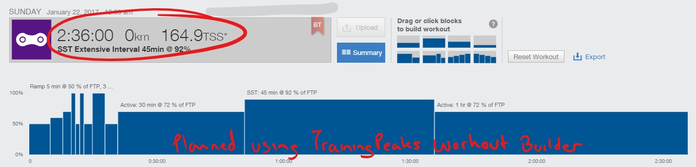 • I modified the Intensity to the mid/low end of SST at 90% and went for 50-minutes cumulative work duration over two 25-minute intervals