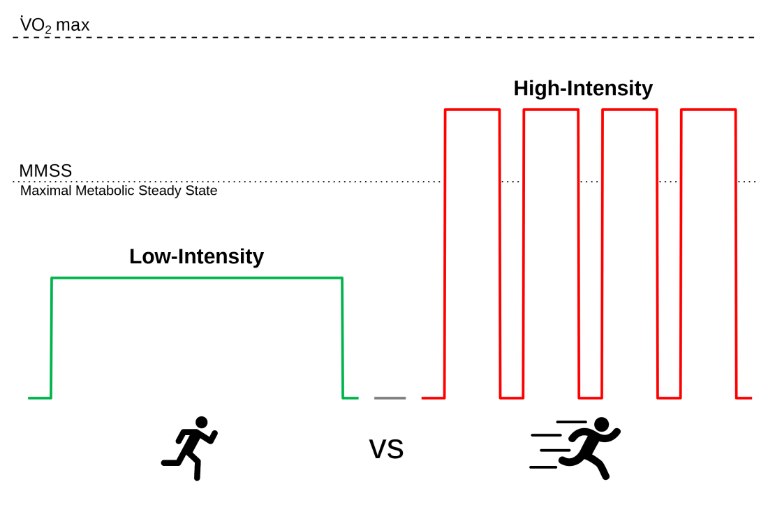 A meta-analysis on endurance athletes' training found that while high-intensity interval training (HIIT) above the maximal metabolic steady state (MMSS) significantly improved oxygen uptake (V̇O2peak), there was no detectable difference in time-trial (TT) performance. This suggests that although increased V̇O2peak is achievable through HIIT, translating it into enhanced TT performance may require a different approach or potentially longer timeframes. The findings may inform athletes on balancing low/intermediate intensity and HIIT sessions.
